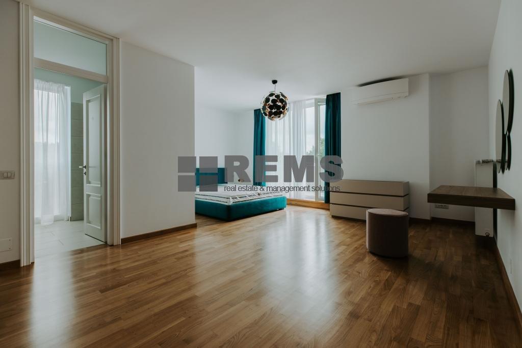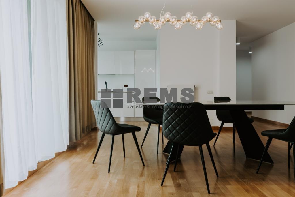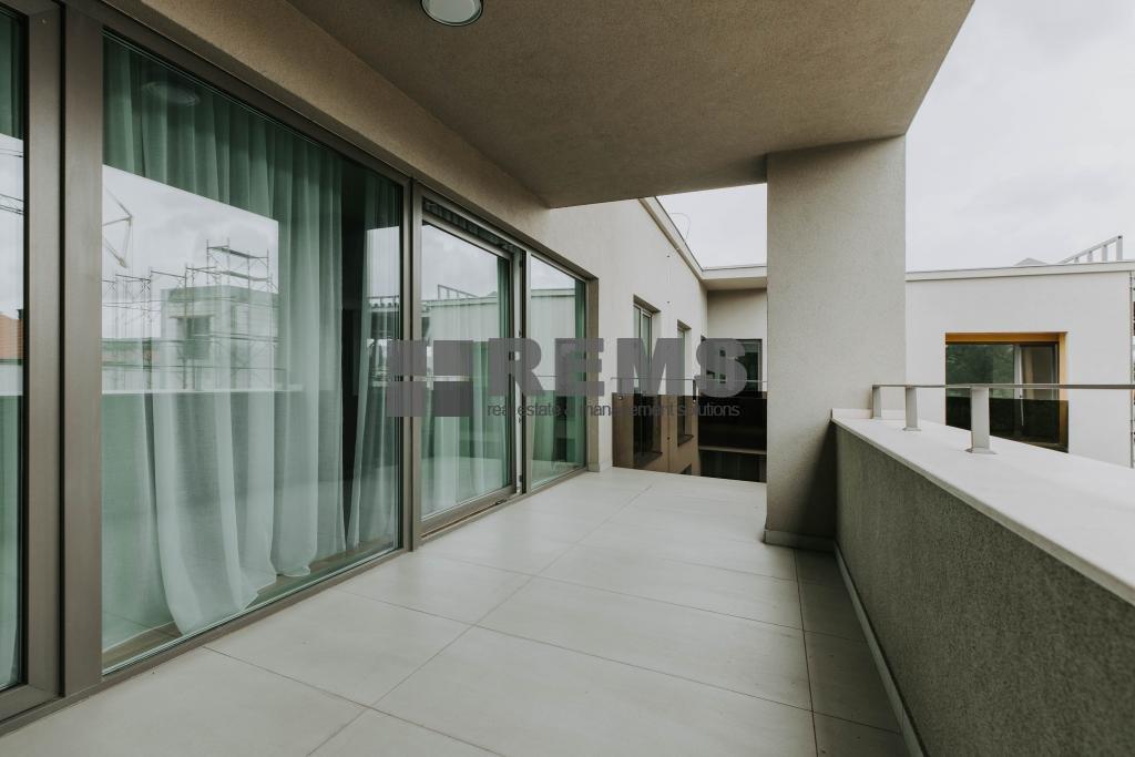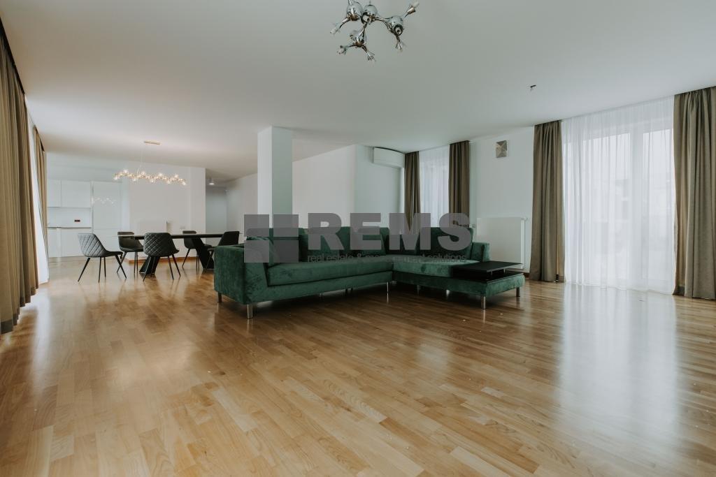 Apartamentul are o suprafata utila de 152 mp si este compus dintr-o camera de zi cu bucatarie, 2 dormitoare ambele cu baie proprie, hol, baie de serviciu, doua balcoane cate unu in fiecare dormitor si o terasa de 24 mp care se acceseaza din living si bucatarie. Apartamentul se afla intr-un bloc nou cu 3 etaje si dispune de 2 locuri de parcare subterane.
