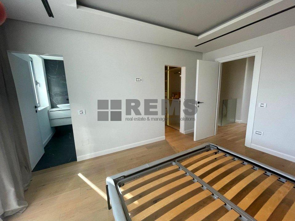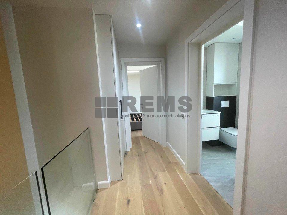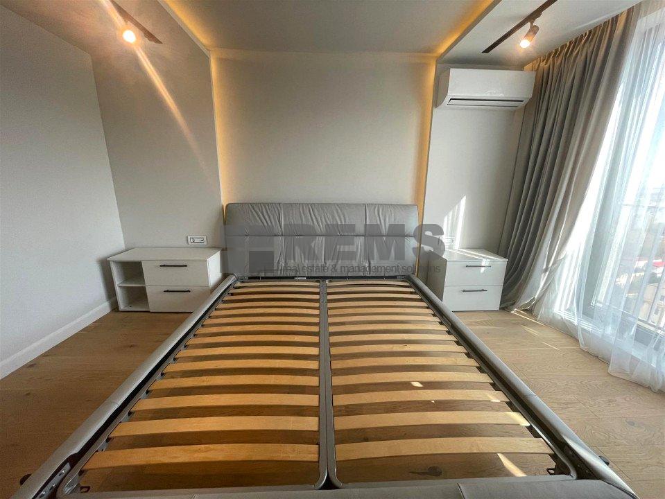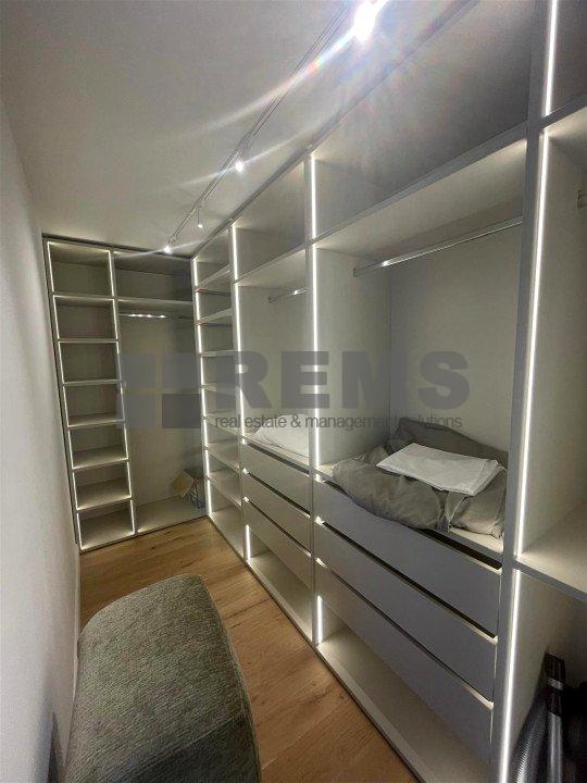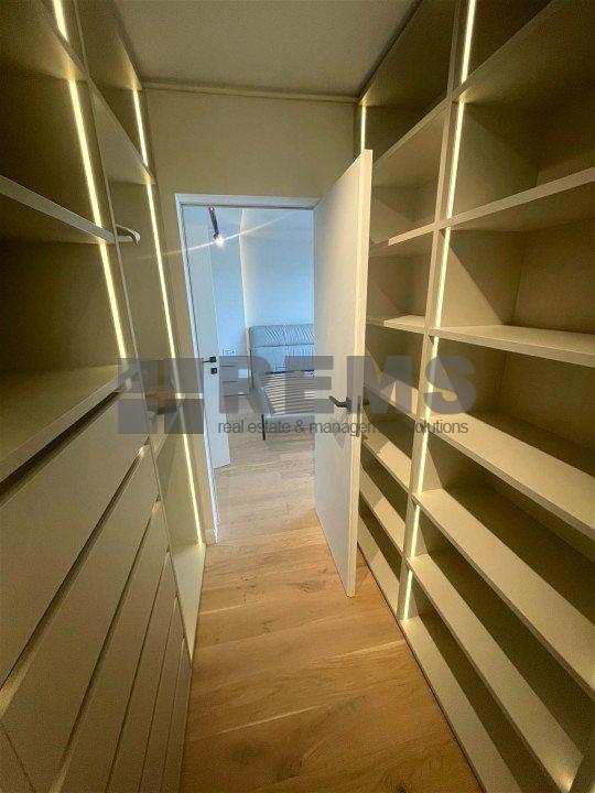 Avand suprafata utila de 87 mp, apartamentul este desfasurat pe 2 nivele, etajele 8 si 9, si este configurat astfel: la primul nivel regasim un hol la intrare, prevazut cu zona de depozitare, bucataria complet utilata impreuna cu loc de servire a mesei, camera de zi, o baie de serviciu, iar la nivelul 2, sunt un dormitor matrimonial cu dressing si baie proprie, a doua baie de pe acest etaj cu acce din hol, precum si un al doilea dormitor cu dressing propriu, complet mobilat.