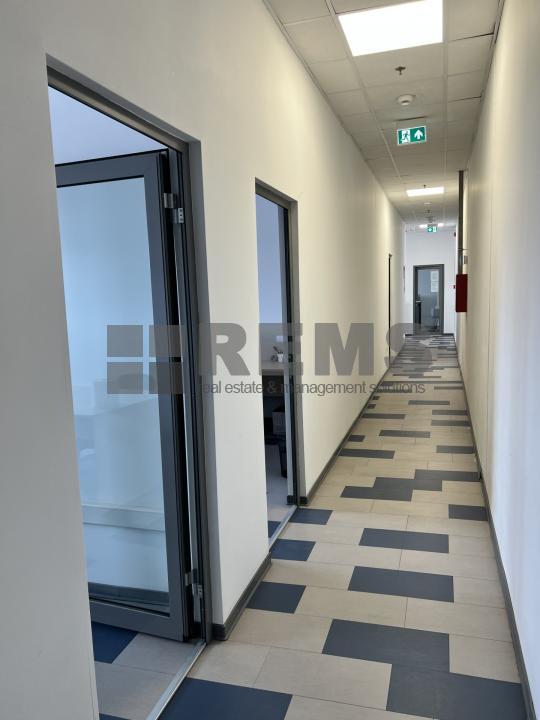 - spatii de birou superfinisate si climatizate 207 mp. Birourile sunt compartimentate in 4 spatii de birou, vestiar, chicineta, 2 grupuri sanitare unul pentru birouri si unul pentru depozit.